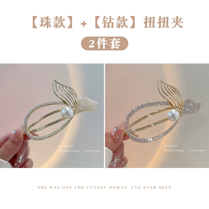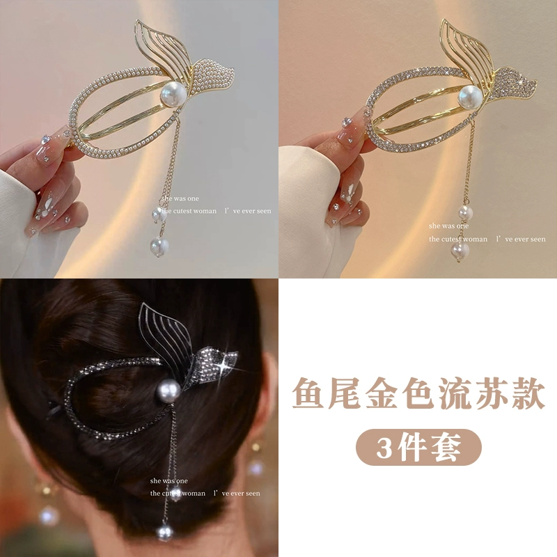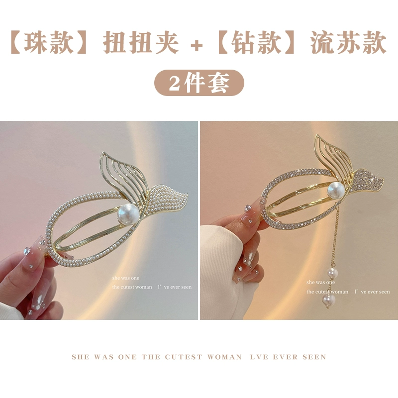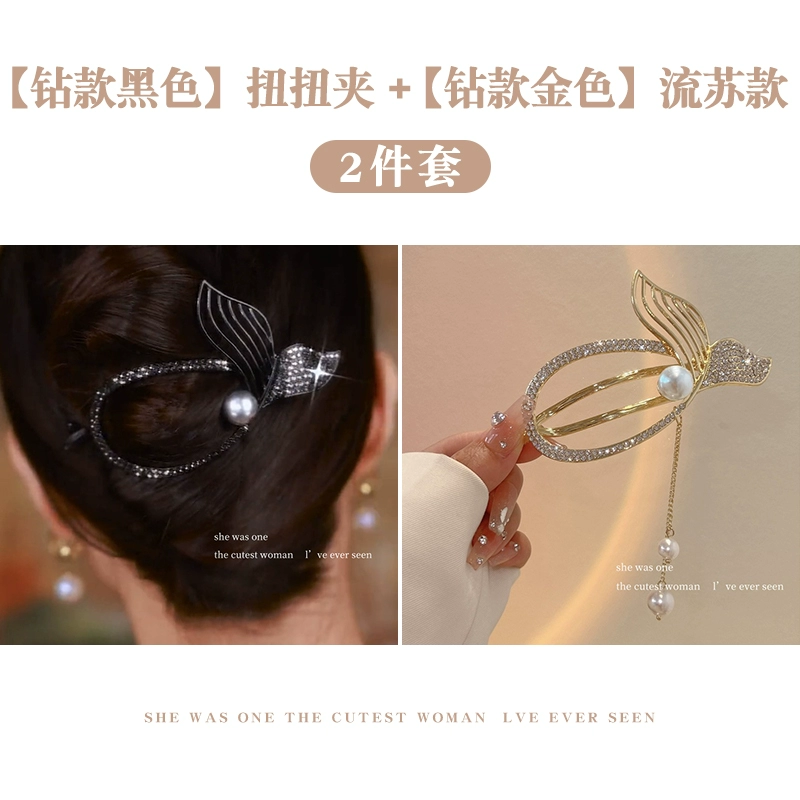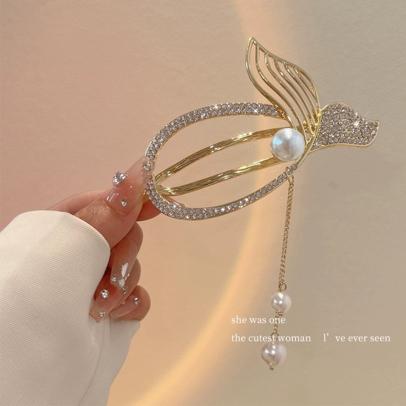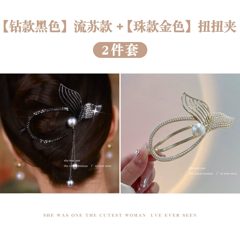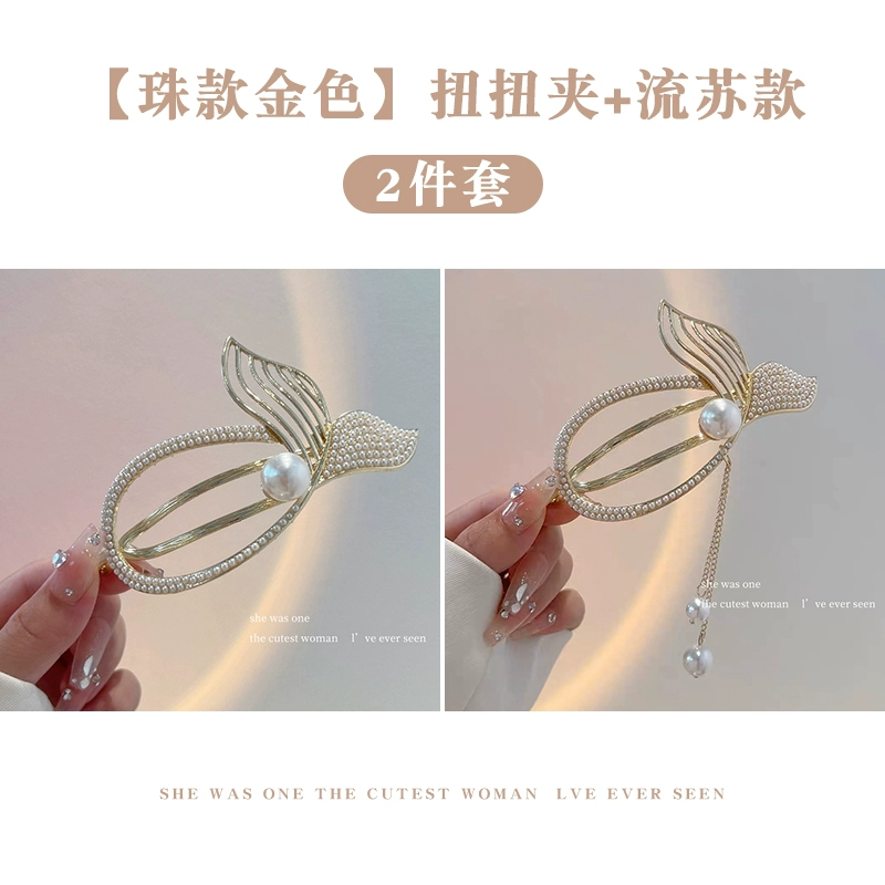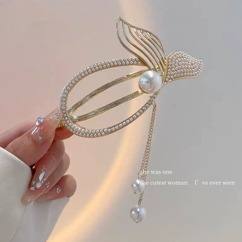 Pearl Fish Tail Tassel Twist Hair Clip Women’s High-end Clip Internet Celebrity Temperament One-word Clip Frog Buckle on the Back of the Head