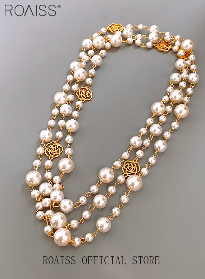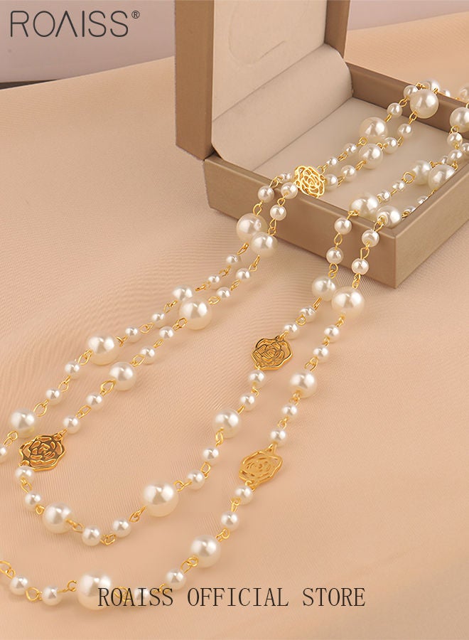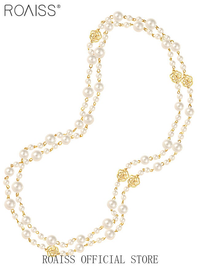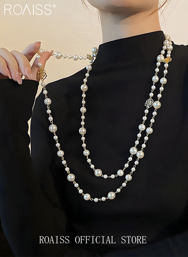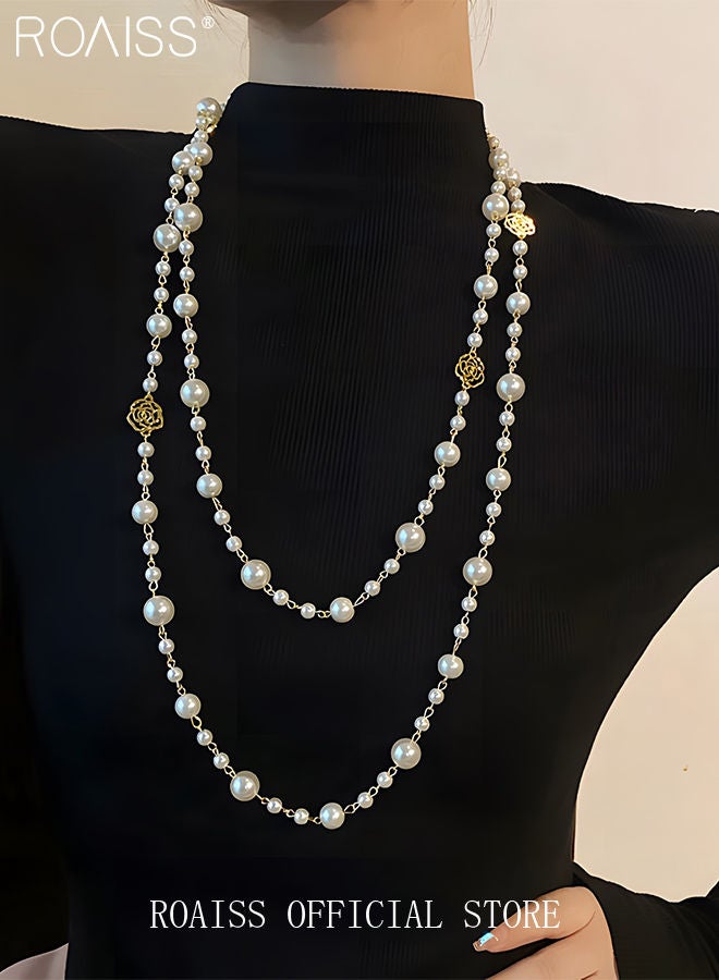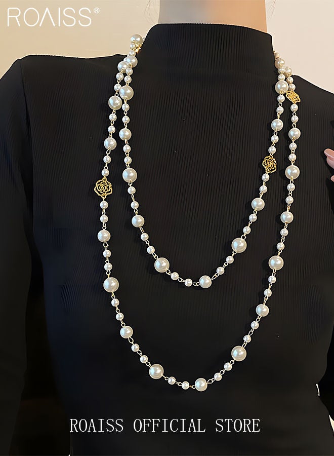 High Quality Dainty Pearl Hollow Out Flower Women Sweater Chain Necklace Long Chain Necklaces Gift for Ladies Girls