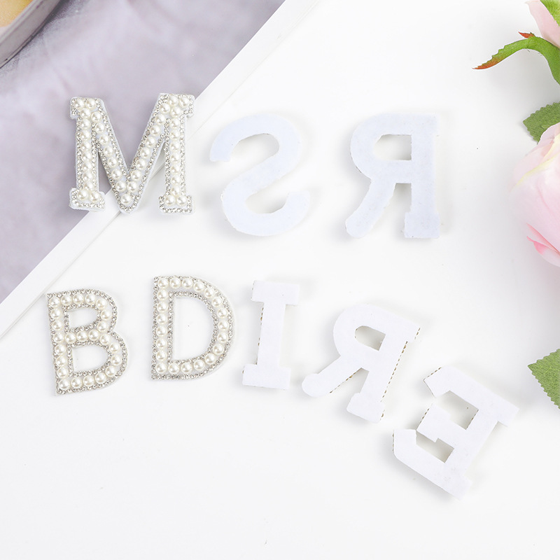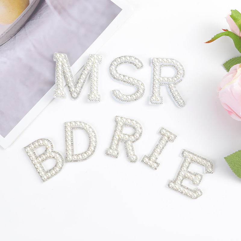 Pearl letters rhinestone stickers 26 letters rhinestone stickers clothes accessories self-adhesive Hot Melt Adhesive rhinestone letters