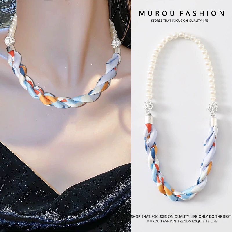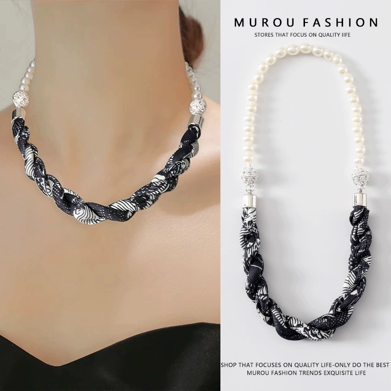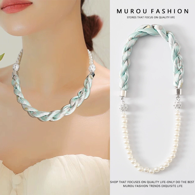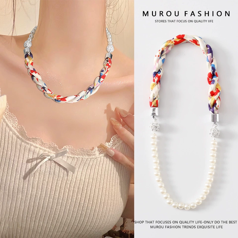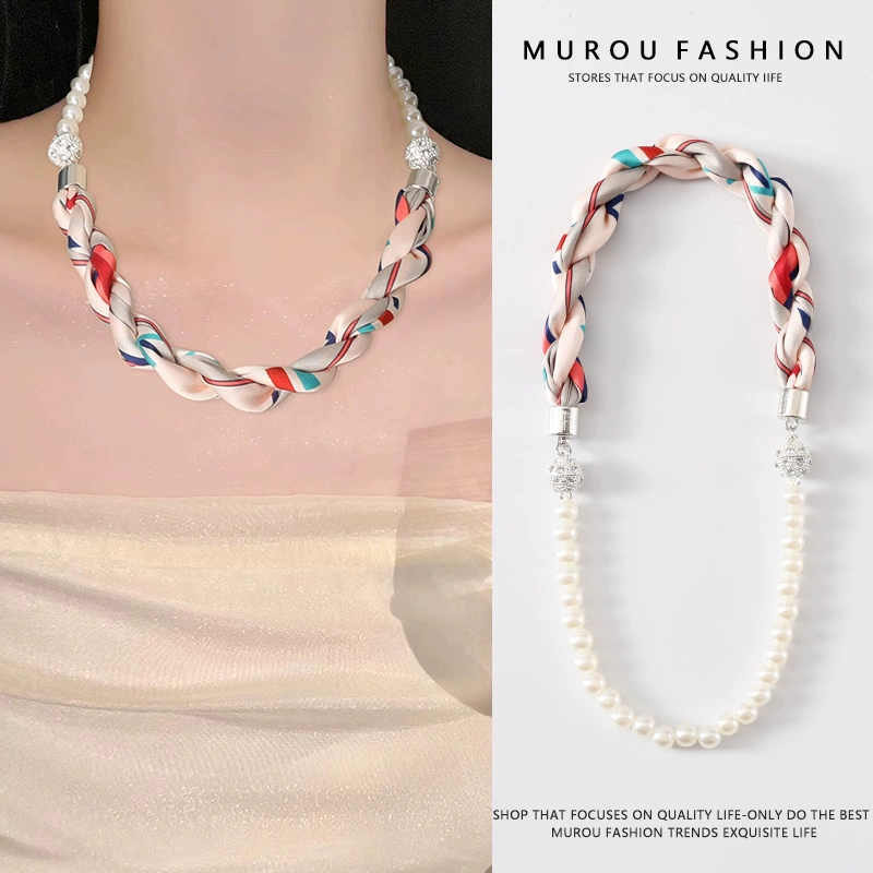 Pearl magnetic buckle long strip women’s spring and summer retro necklace