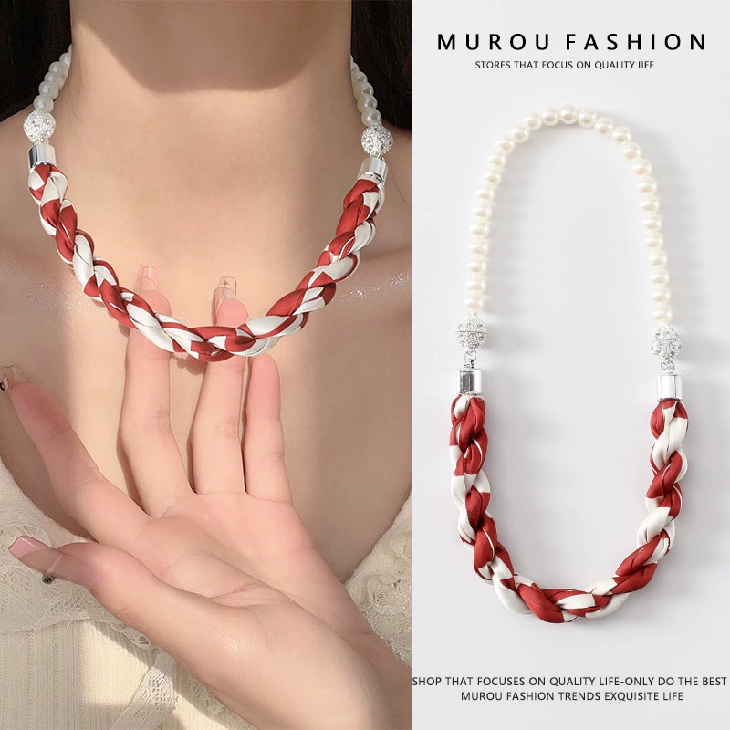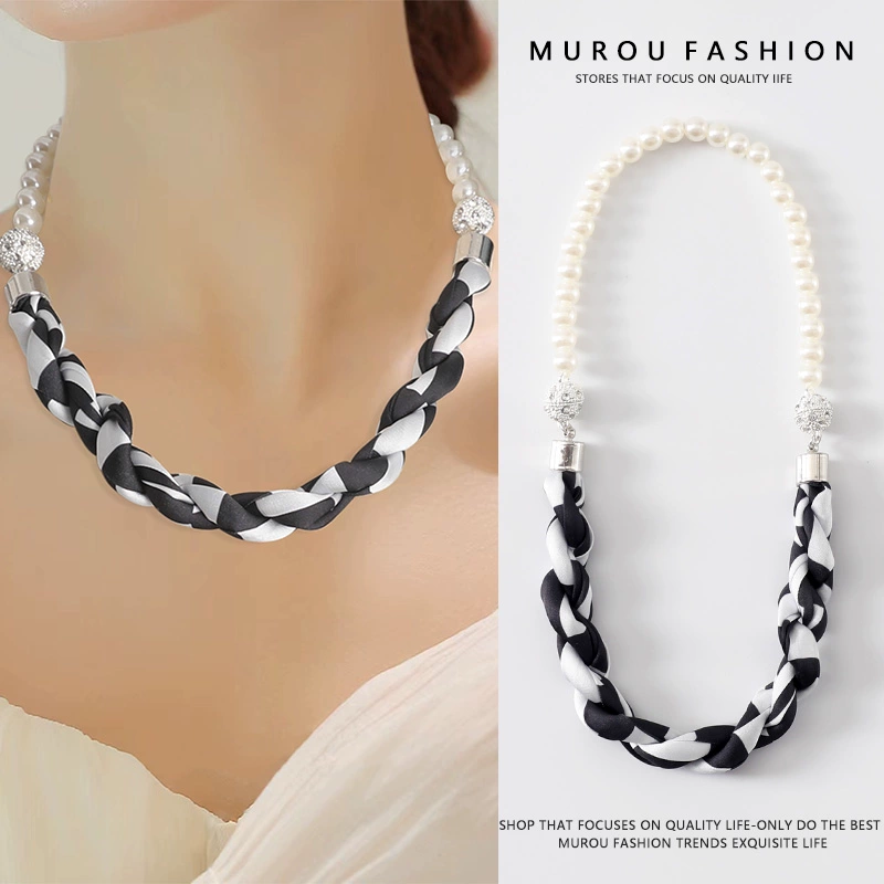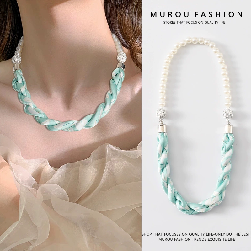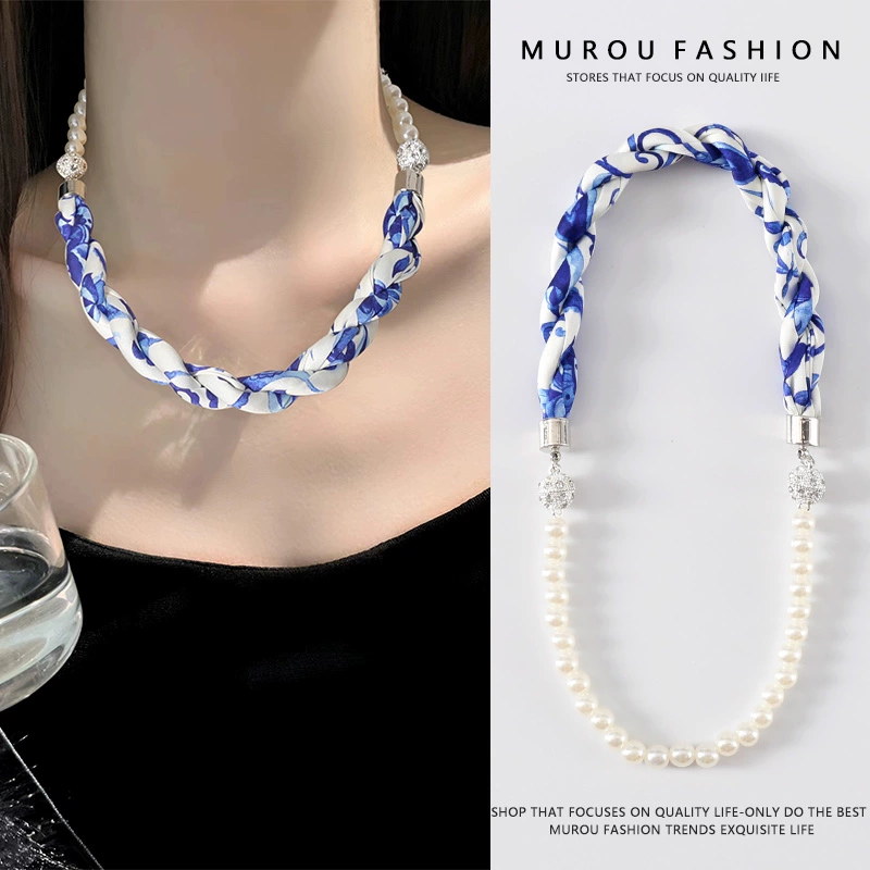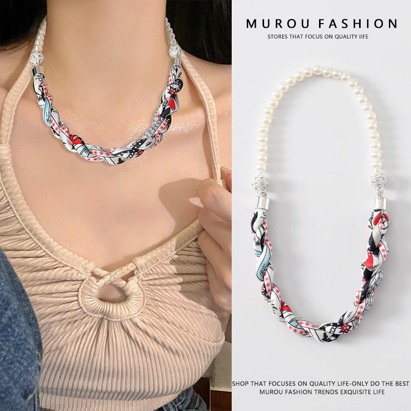 Pearl magnetic buckle long strip women’s spring and summer retro necklace