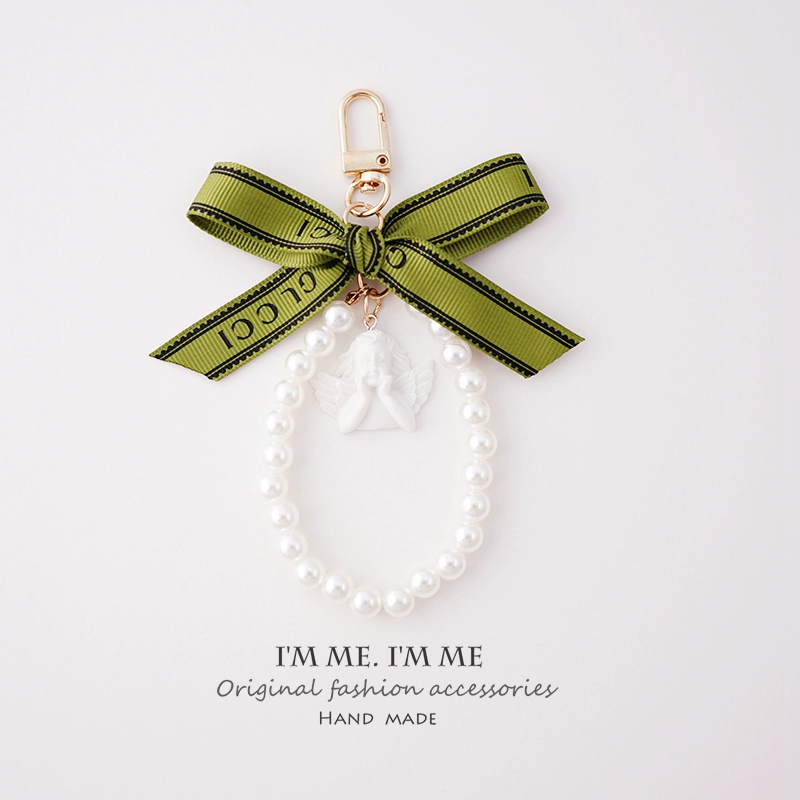 Pearl mobile phone U disk minimalist retro letter green ribbon