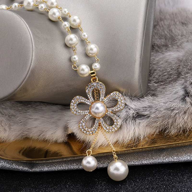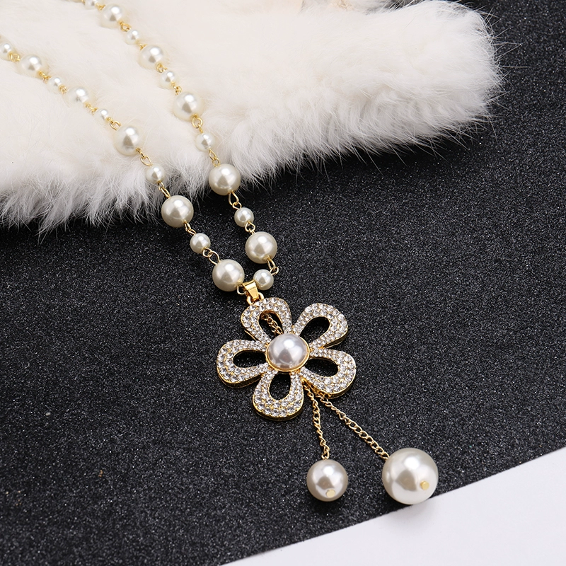 Pearl necklace women's long Japanese and Korean fashion versatile crystal tassel sweater hanging chain autumn and winter clothing decorative chain pendant
