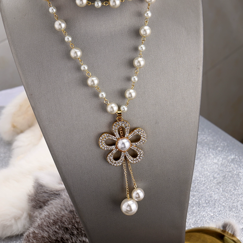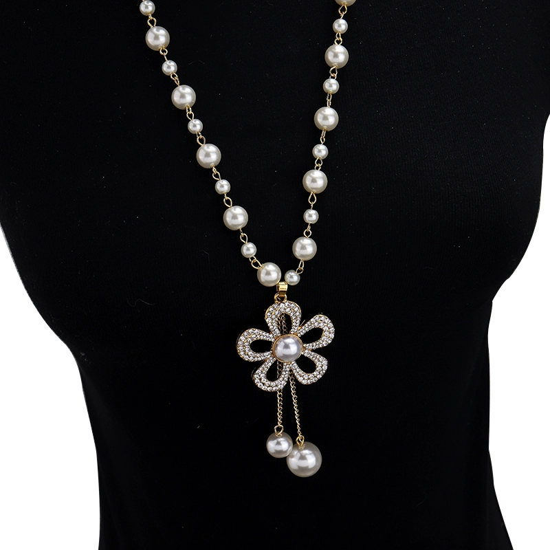Pearl necklace female long Japanese and Korean fashion versatile crystal stroke sweater hanging chain autumn and winter clothing decoration chain pendant
