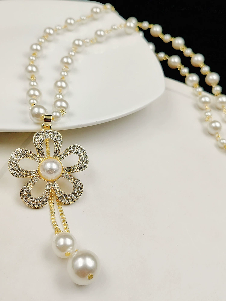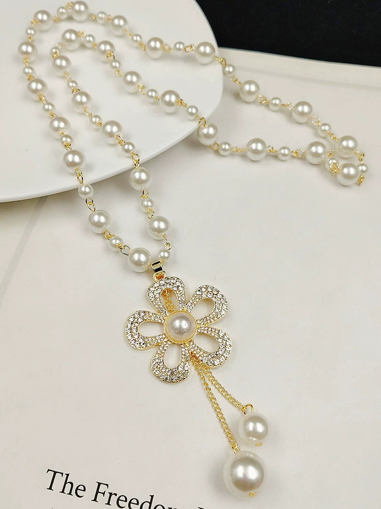 | nameOriginal | Pearl Necklace Women's Sweater Chain 2024 New Hot Style Internet Celebrity Temperament European Ins Versatile Accessories Flower Pendant |