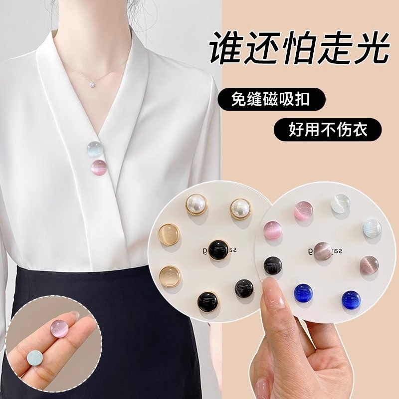 | nameOriginal | Pearl Opal Anti-light Artifact Brooch Hidden Buckle Women's High-end Buttons Fixed Clothes Shirt Collar Accessories |
