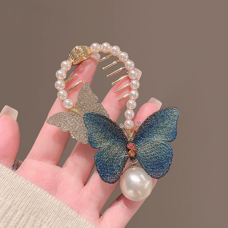Pearl tassel butterfly hairpin for women on the back of the head, super fairy ball hair ornament, high-end grabber hairpin hair artifact headwear