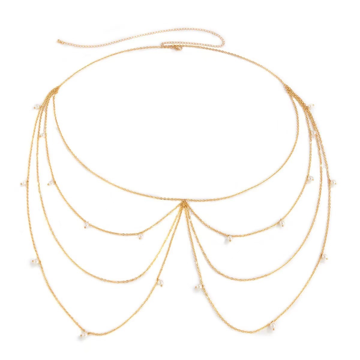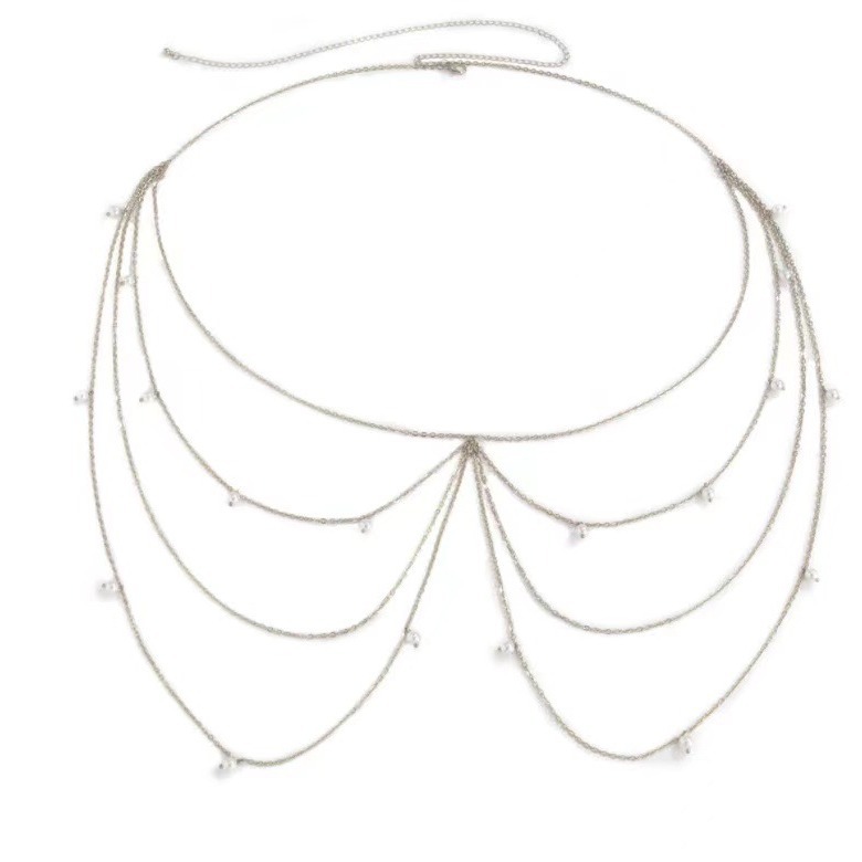 Pearl tassel multi-layer waist chain simple cross chain temperament fashion body chain European and American waist decoration cross-border jewelry