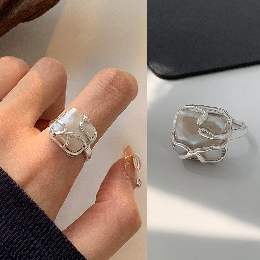 | nameOriginal | Pearl vine ring for women, fashionable stacking, temperament, zircon double-layer open ring, Korean style S925 silver index finger ring trendy |