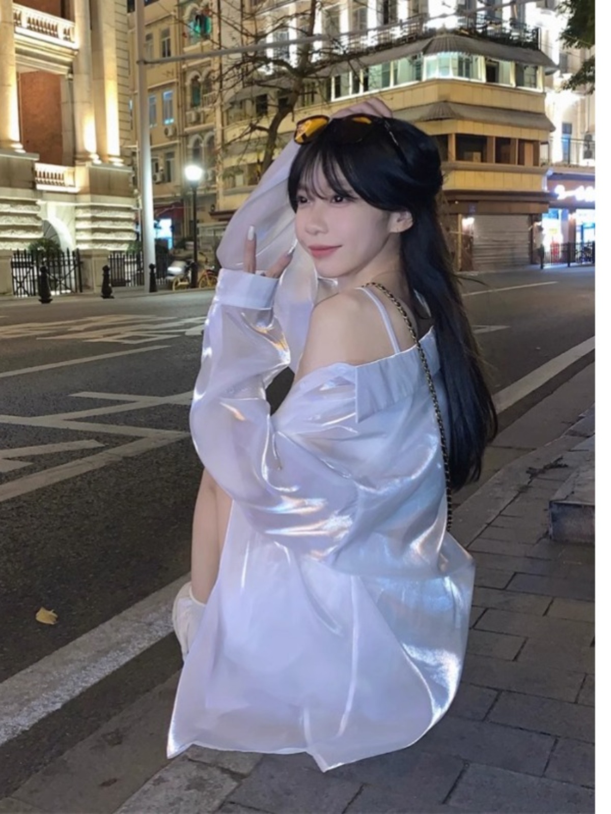 Pearlescent micro-transparent shirt, fat girl pants fashion suit