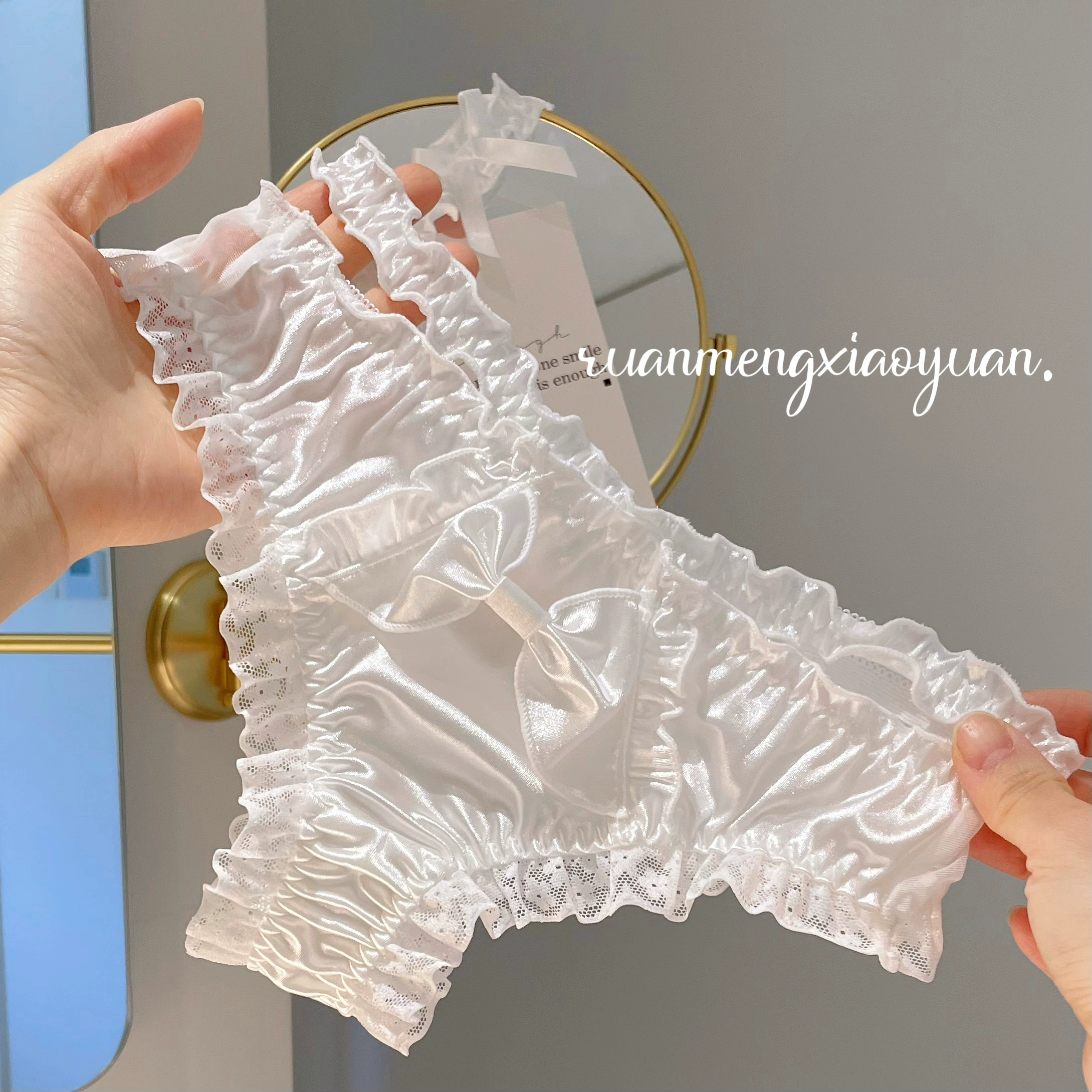 | nameOriginal | Pearlescent satin bow girl Japanese T-pants pure lustful pink waist hanging sexy women's underwear lace |