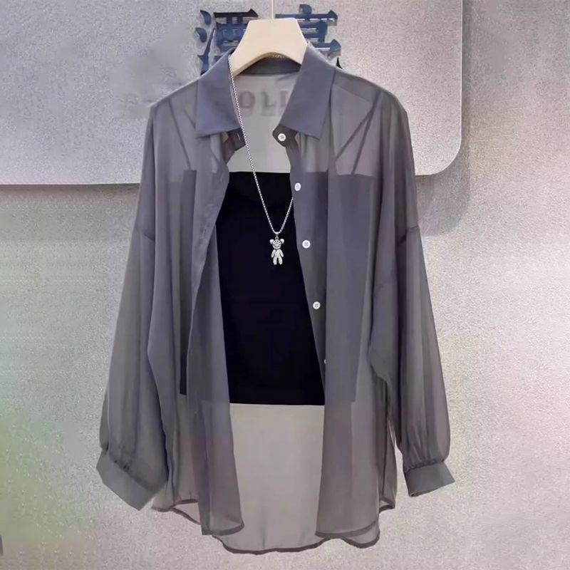 | nameOriginal | Pearlescent yarn summer 2024 new loose all-match fashion long shirt thin commuter sunscreen |