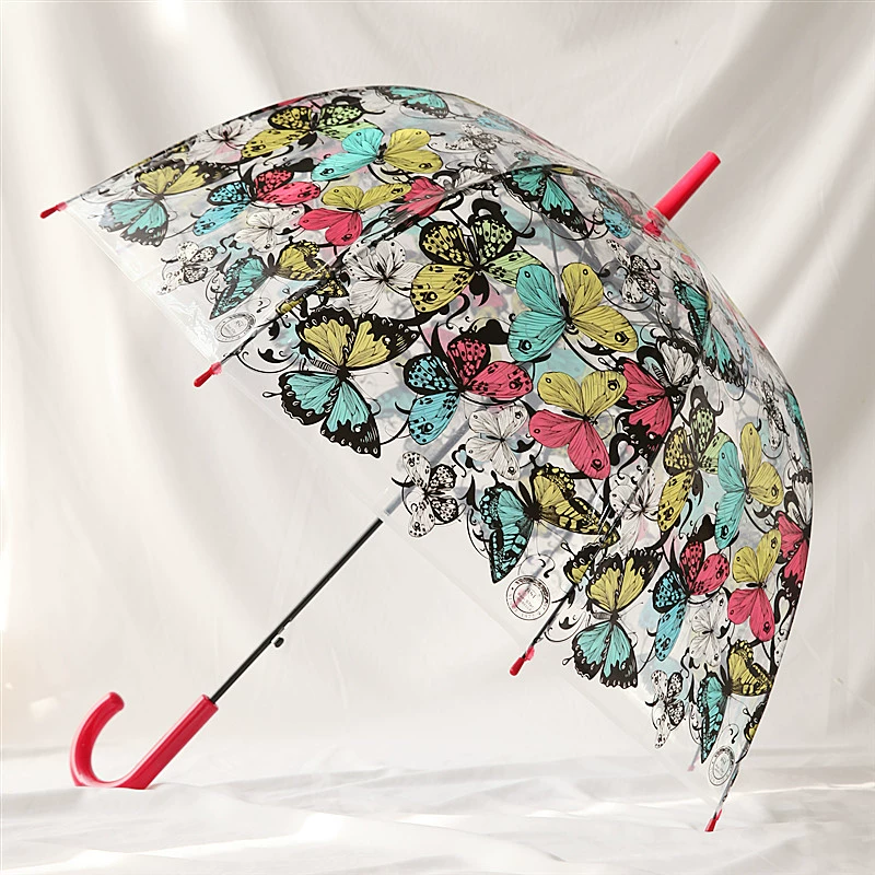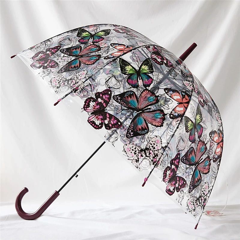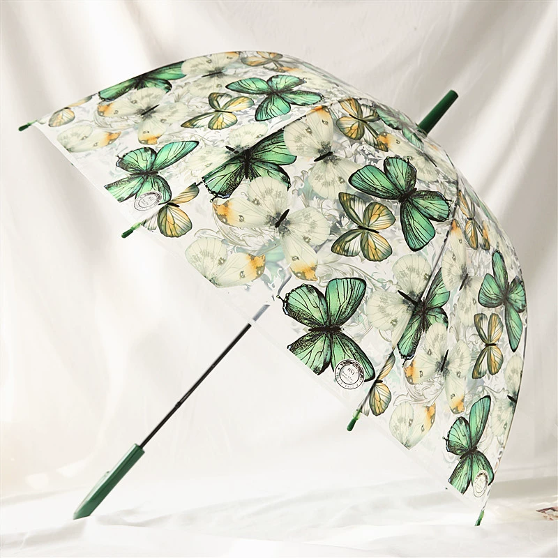 Peixin retro printed curved handle semi-automatic transparent umbrella