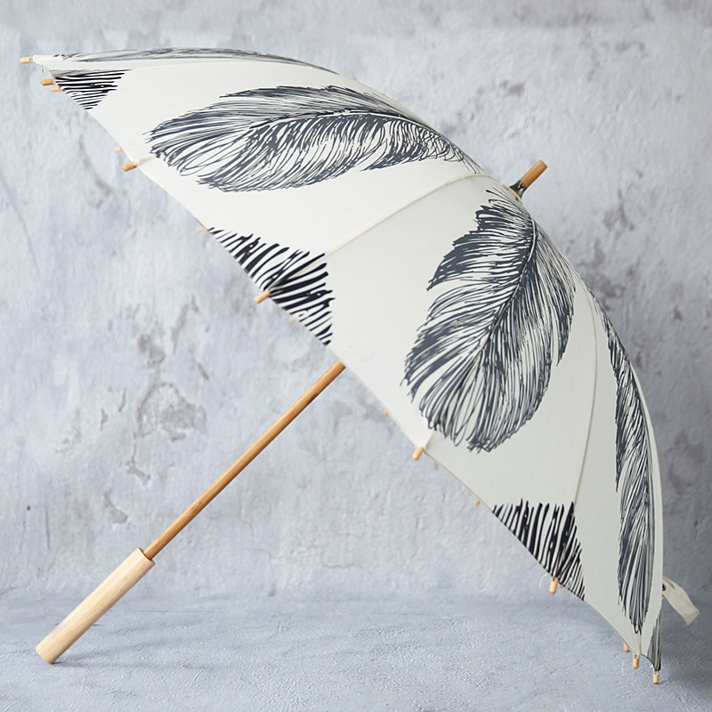 | nameOriginal | Peixin Sunny Umbrella New Feather Print Retro Style 16 Bone Bamboo Umbrella Straight Umbrella Nordic Style Arched Long Handled Umbrella |