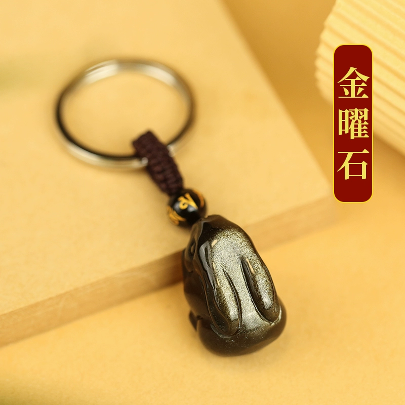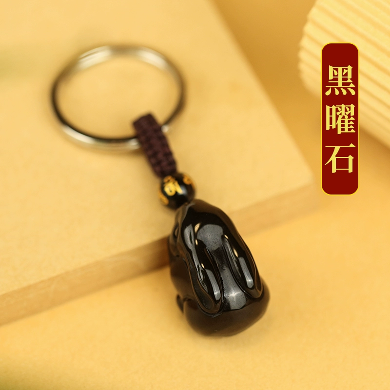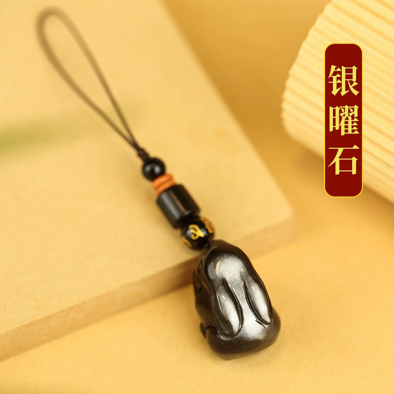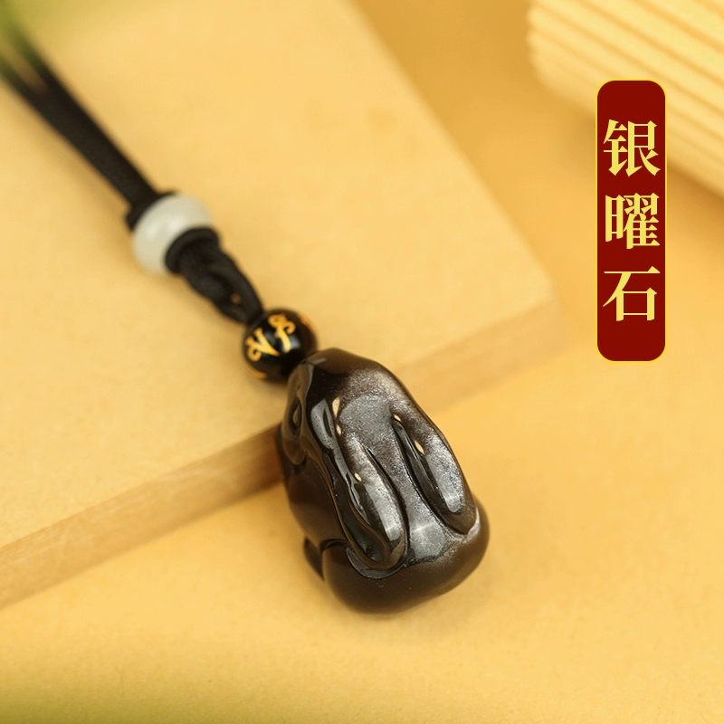 Pendant Cute Rabbit Couple Model Natural Obsidian