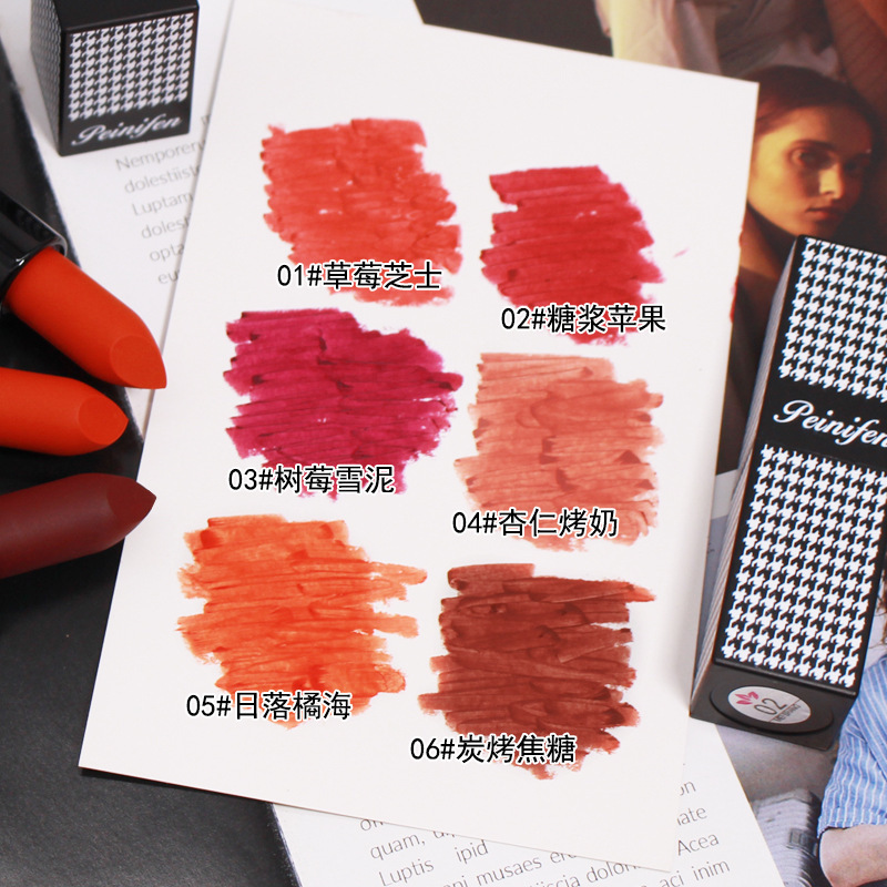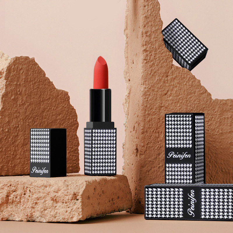 | nameOriginal | Penny Finn Houndstooth Lipstick with Almond Roasted Milk Matte Foggy Noodles Does Not Stick Cup Lip Mud Pure White Lipstick for Student Party |
