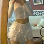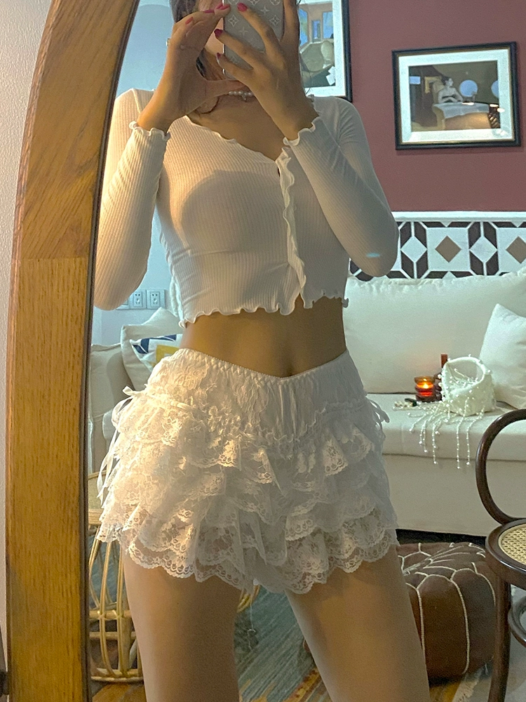 | nameOriginal | Peony lace stitching high waist bottoming slim shorts |
