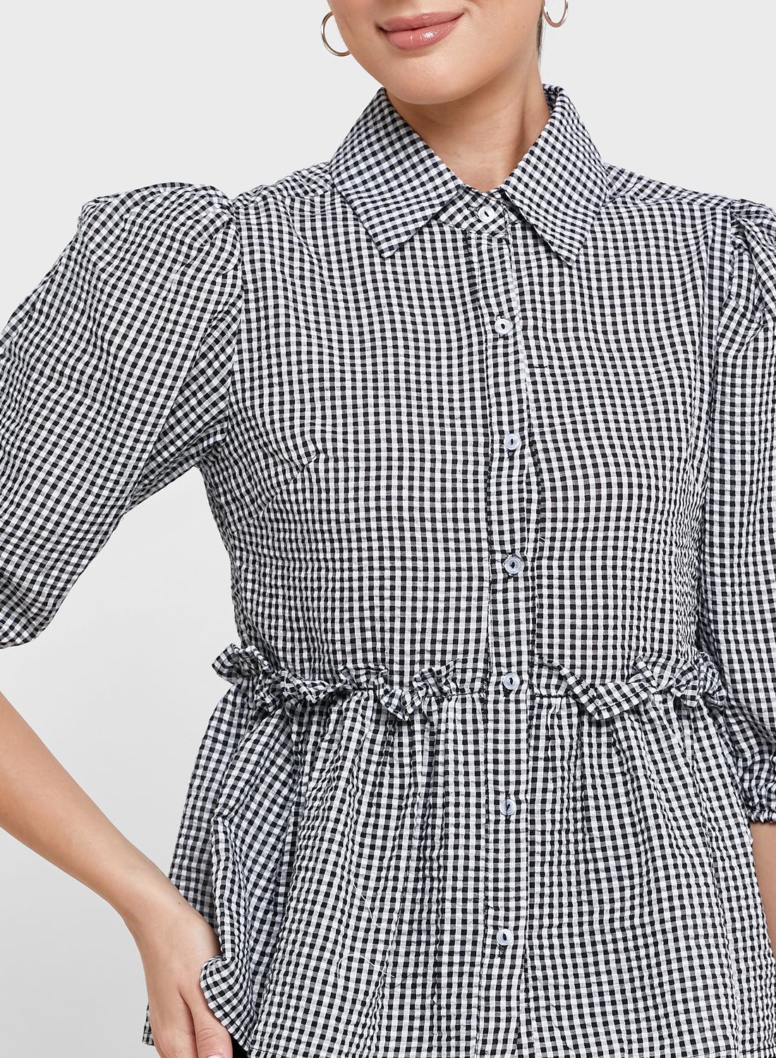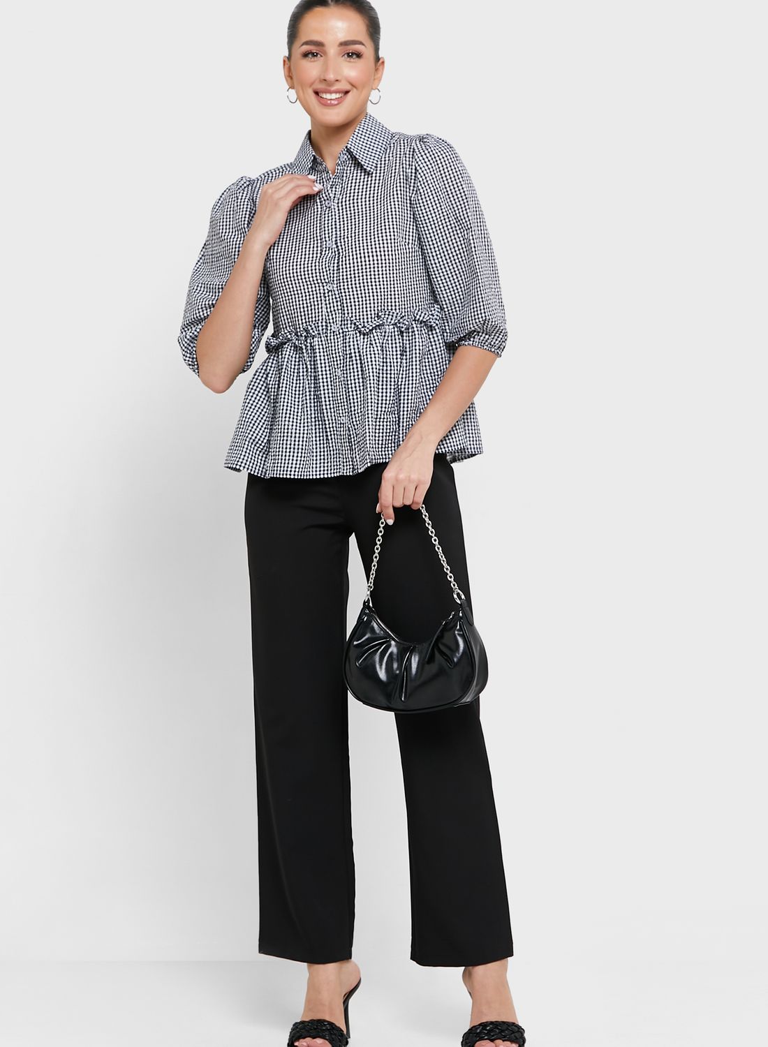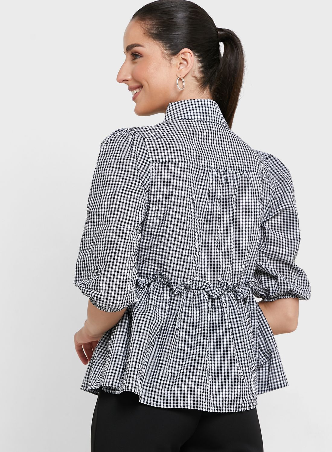| nameOriginal | Gingham Puff Sleeve Peplum Top |