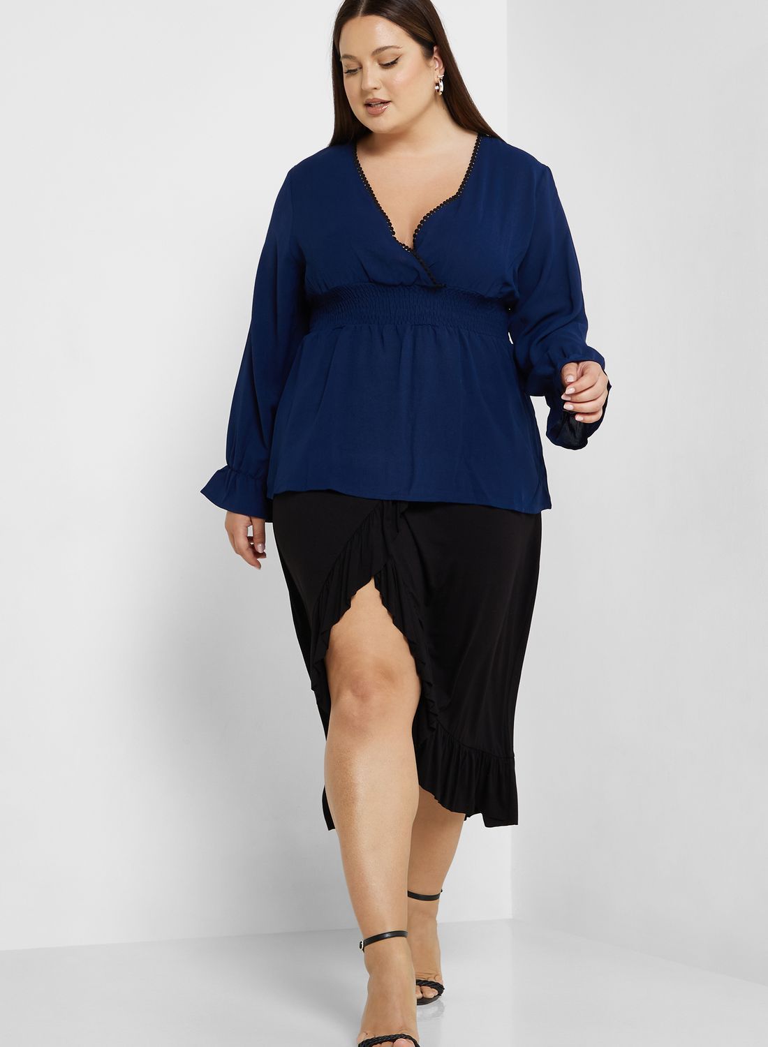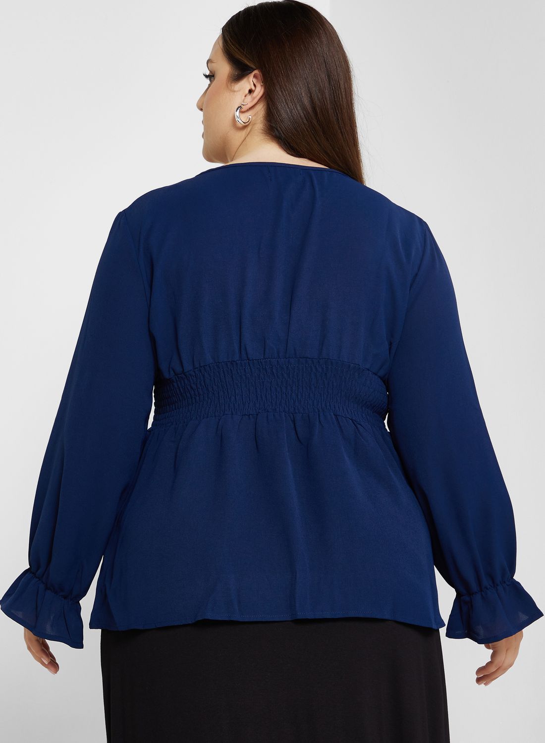 | nameOriginal | Solid Cuff Sleeve Peplum Top |