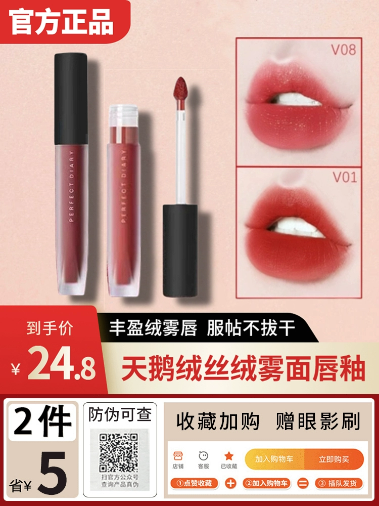 | nameOriginal | Perfect Diary Velvet Lip Glaze Golden Velvet V14 Matte V01 Matte V07 Lipstick V08 Female Student Model Affordable |