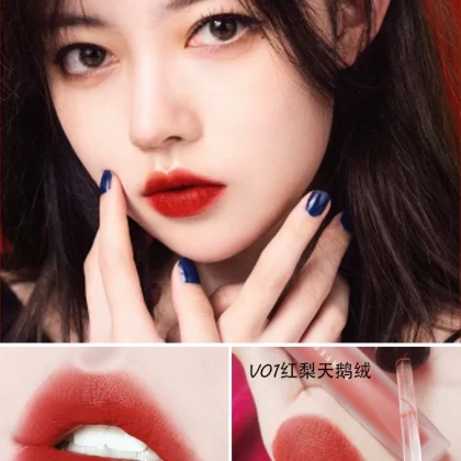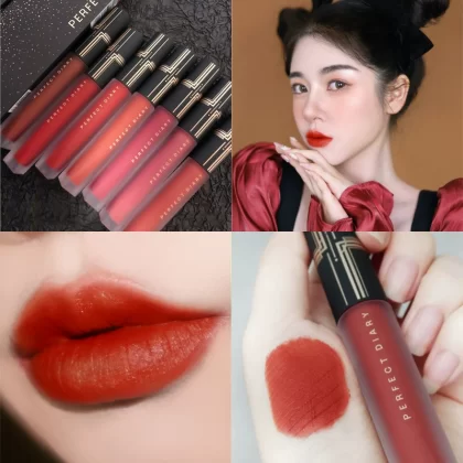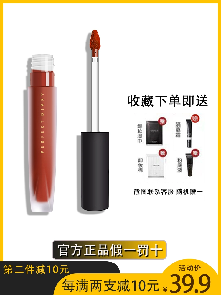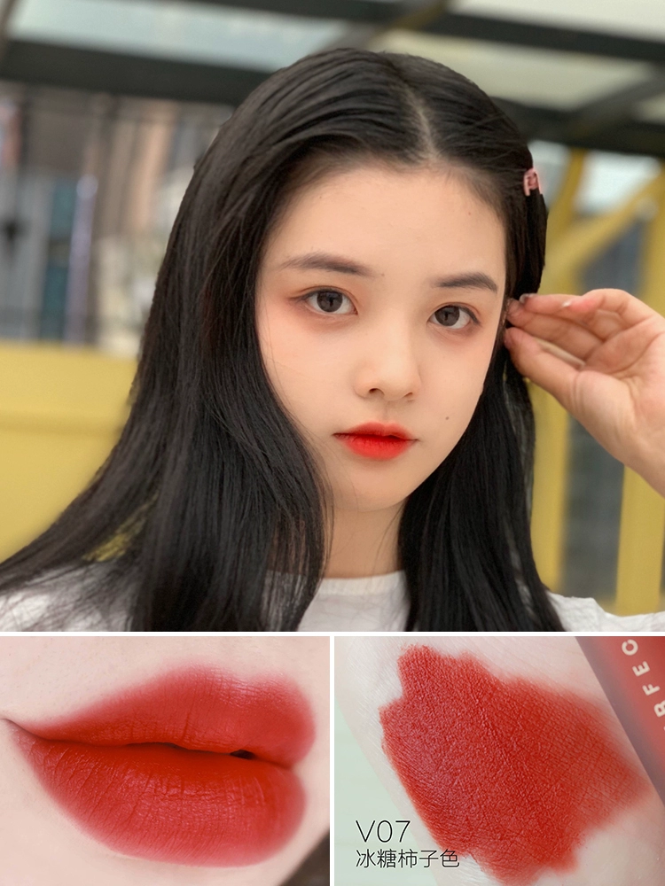 Perfect diary velvet lip glaze V01 velvet V07 niche brand matte lipstick red v08 genuine white mist surface