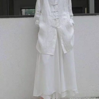 | nameOriginal | Performance clothes women's Zen buckle loose shirt hanfu style white shirt Women's Mid-length |