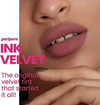 Peripera Velvet Lip Tint in Rosy Nude: High Pigment, Longwear, Weightless, Cruelty-Free, Gluten-Free, Paraben-Free.