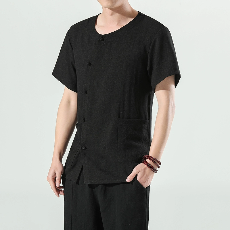 | nameOriginal | Personalized asymmetric placket short-sleeved shirt Chinese style casual men's trendy large size retro buckle youth Tang suit |