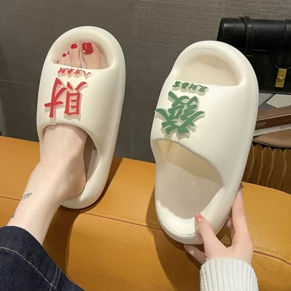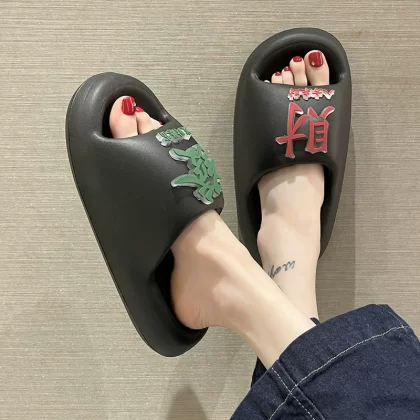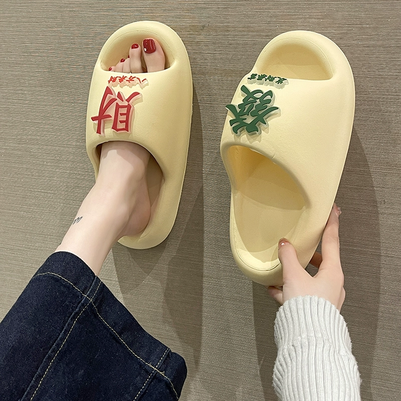 Personalized fortune sandals for women in summer, Internet celebrity indoor and outdoor wear, fashionable and shit-feeling thick-soled non-slip beach slippers for men