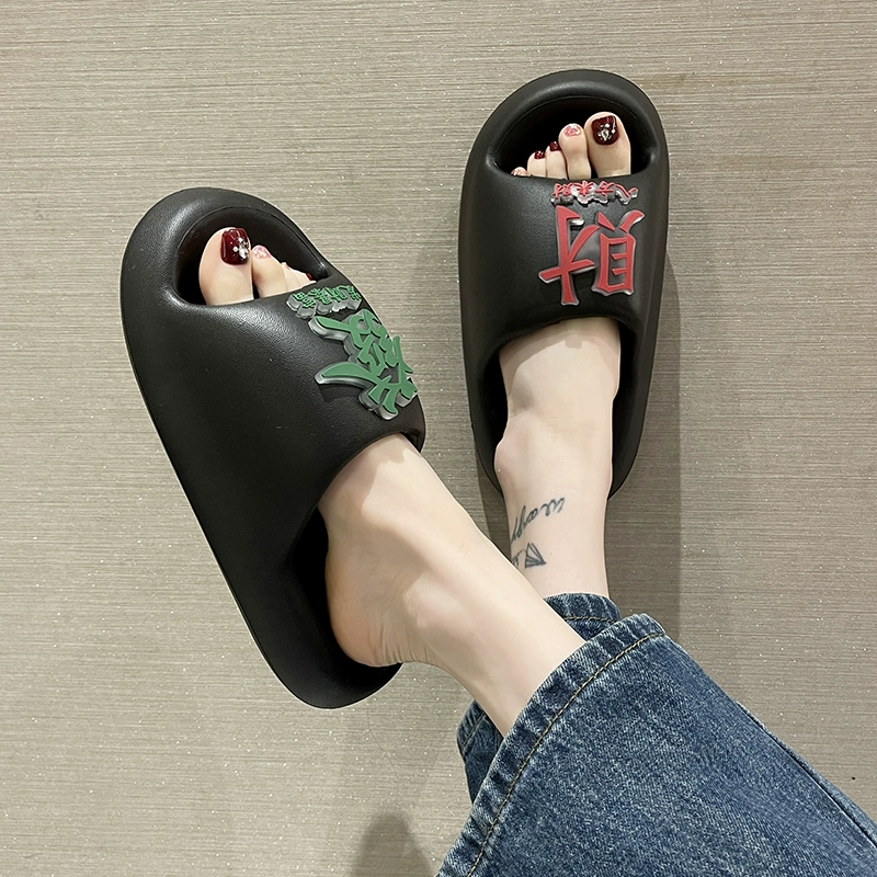 Personalized fortune thick-soled sandals for women in summer, fashionable internet celebrity indoor and home wear, soft-soled flip-flops