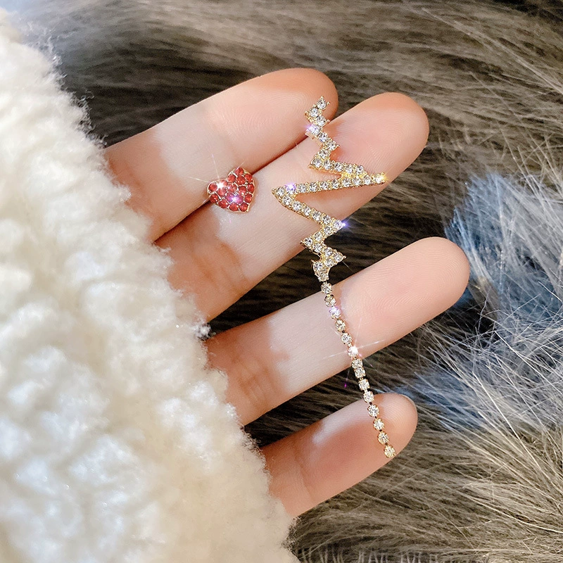| nameOriginal | Personalized heartbeat asymmetric full diamond fashion silver needle for women |