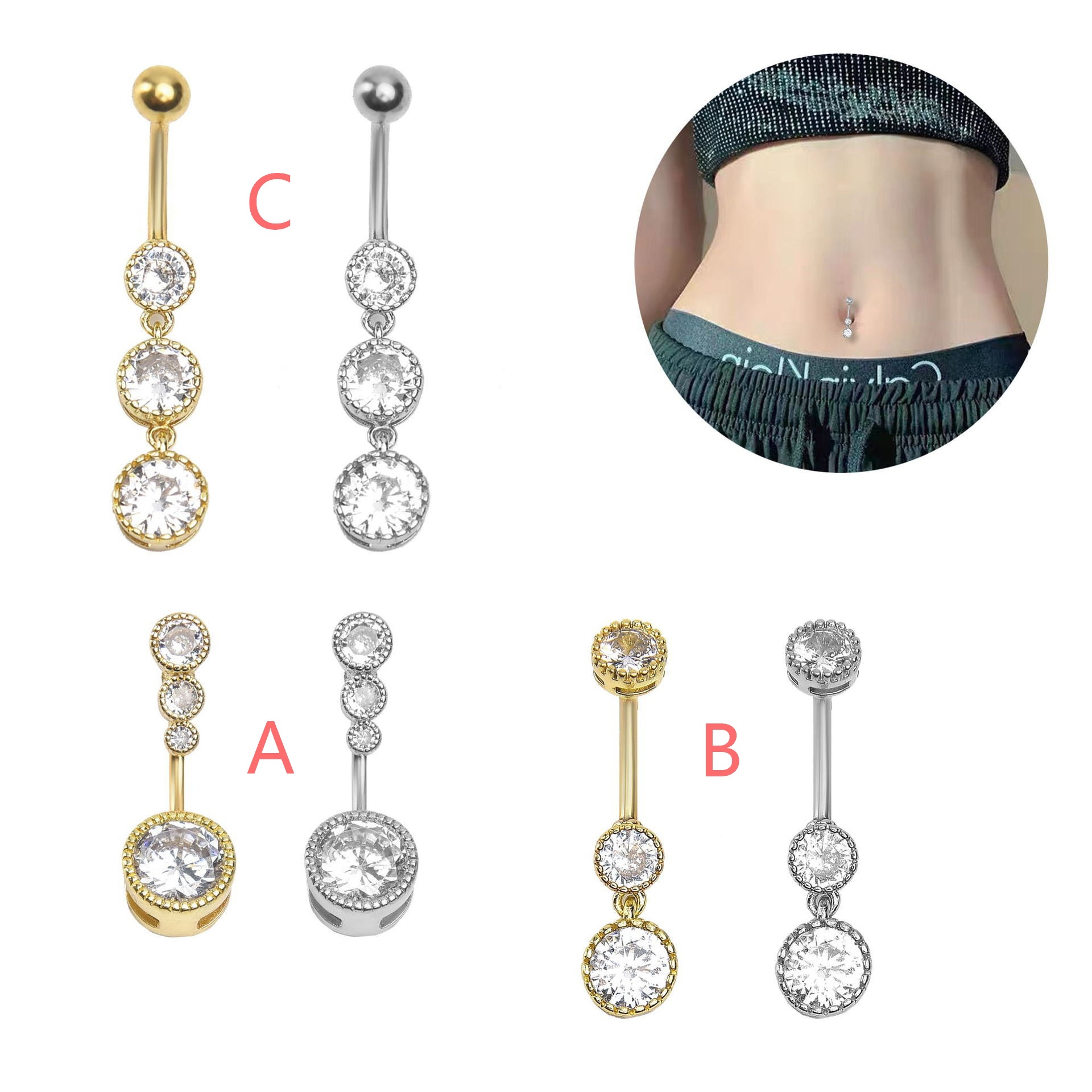 | nameOriginal | Personalized Puncture Zircon Umbilical Nail European and American Hot Selling Customizable Pattern Umbilical Ring Stitching Geometric Navel Buckle |