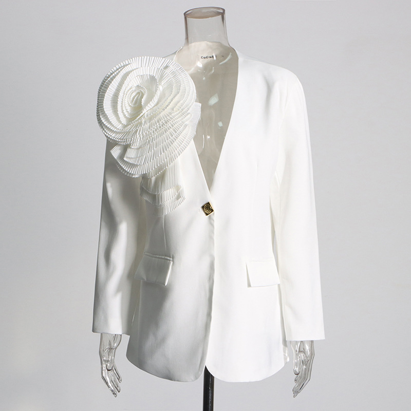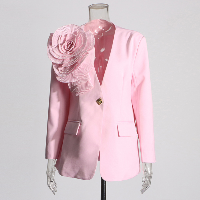 | nameOriginal | Personalized retro niche 2024 summer new side three-dimensional large plate flower V-neck long sleeve one-button suit jacket |