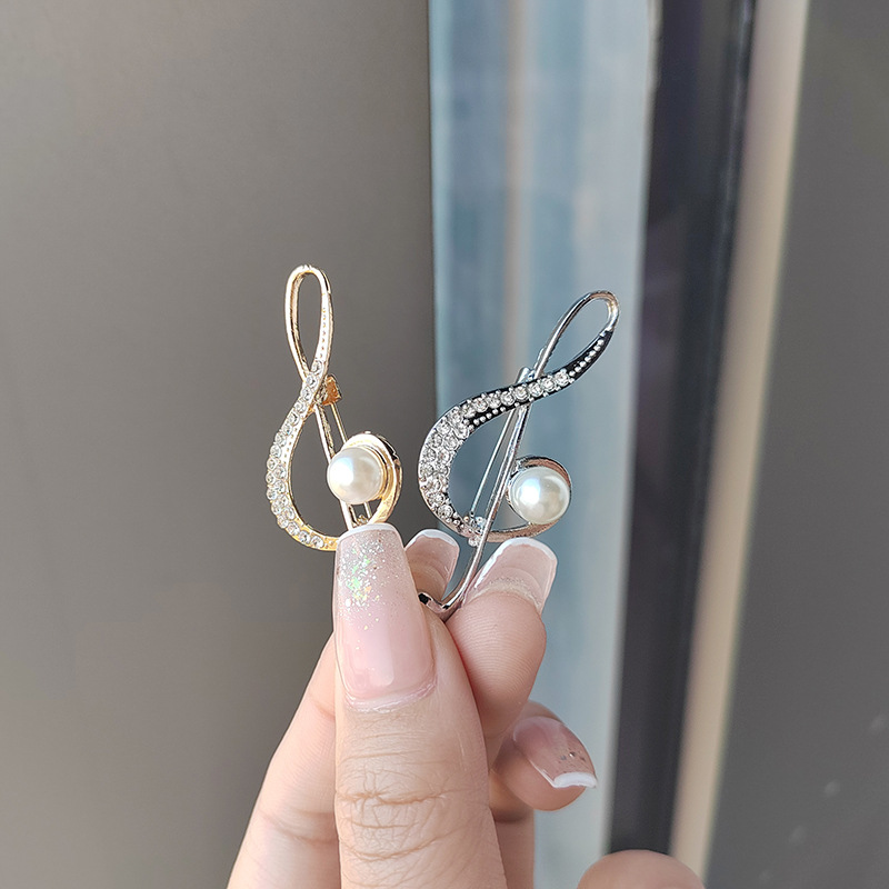 | nameOriginal | Personalized rhinestone Pearl note brooch multi-functional collar pin women's fixed suit coat accessories music symbol |