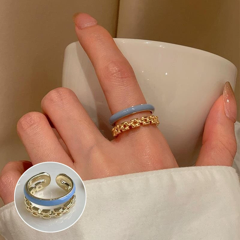 | nameOriginal | Personalized stacked sweet and cool four-leaf ring for women French retro niche drip glaze color matching S925 silver open index finger ring trendy |