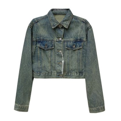 Personalized Washed Vintage Blue Denim Long-sleeved Short Coat 2024 Spring New Women’s Short Laps Top Trendy
