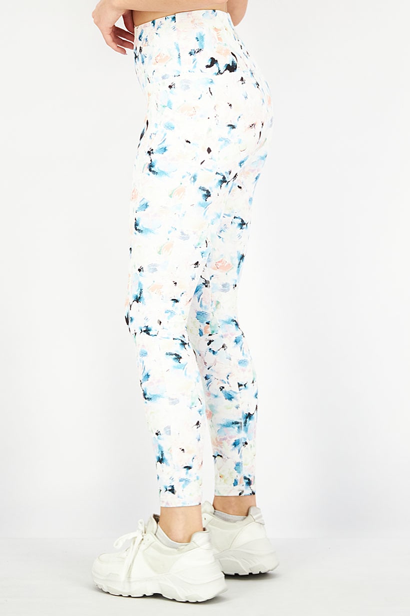 These leggings are perfect for women who enjoy training. They have a sportswear fit and a straight hem, with a pull-on bottom closure. The fabric is a light blend of 75% polyester and 25% spandex, making them comfortable and easy to care for with machine washing. The allover print adds a stylish touch to these white leggings. Please note that the product color may vary slightly due to lighting or monitor settings.