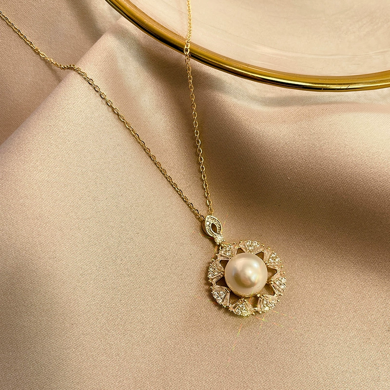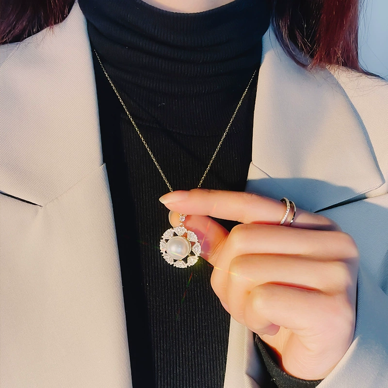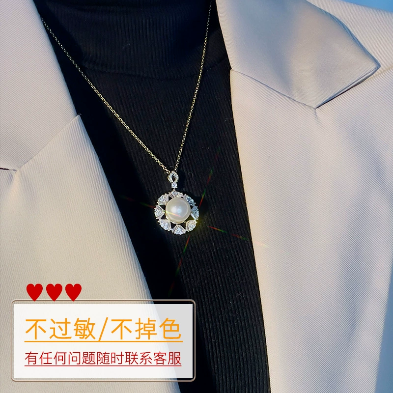 Petal-shaped round pendant, high-end pearl necklace, light luxury titanium steel clavicle chain, personalized fashionable temperament, internet celebrity jewelry