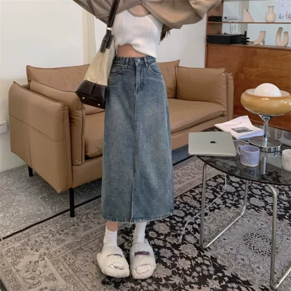| nameOriginal | Petite A-line slit spring and autumn denim skirt |