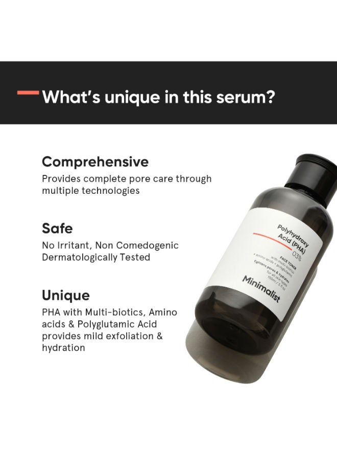 Introducing our Polyhydroxy Acid (PHA) 03% Face Toner, the perfect addition to your skincare routine! This toner is specially formulated with PHA, a gentle exfoliating acid that helps to remove dead skin cells and promote cell turnover, revealing brighter and smoother skin. With a 03% concentration, this toner is gentle enough for daily use and suitable for all skin types, including sensitive skin.