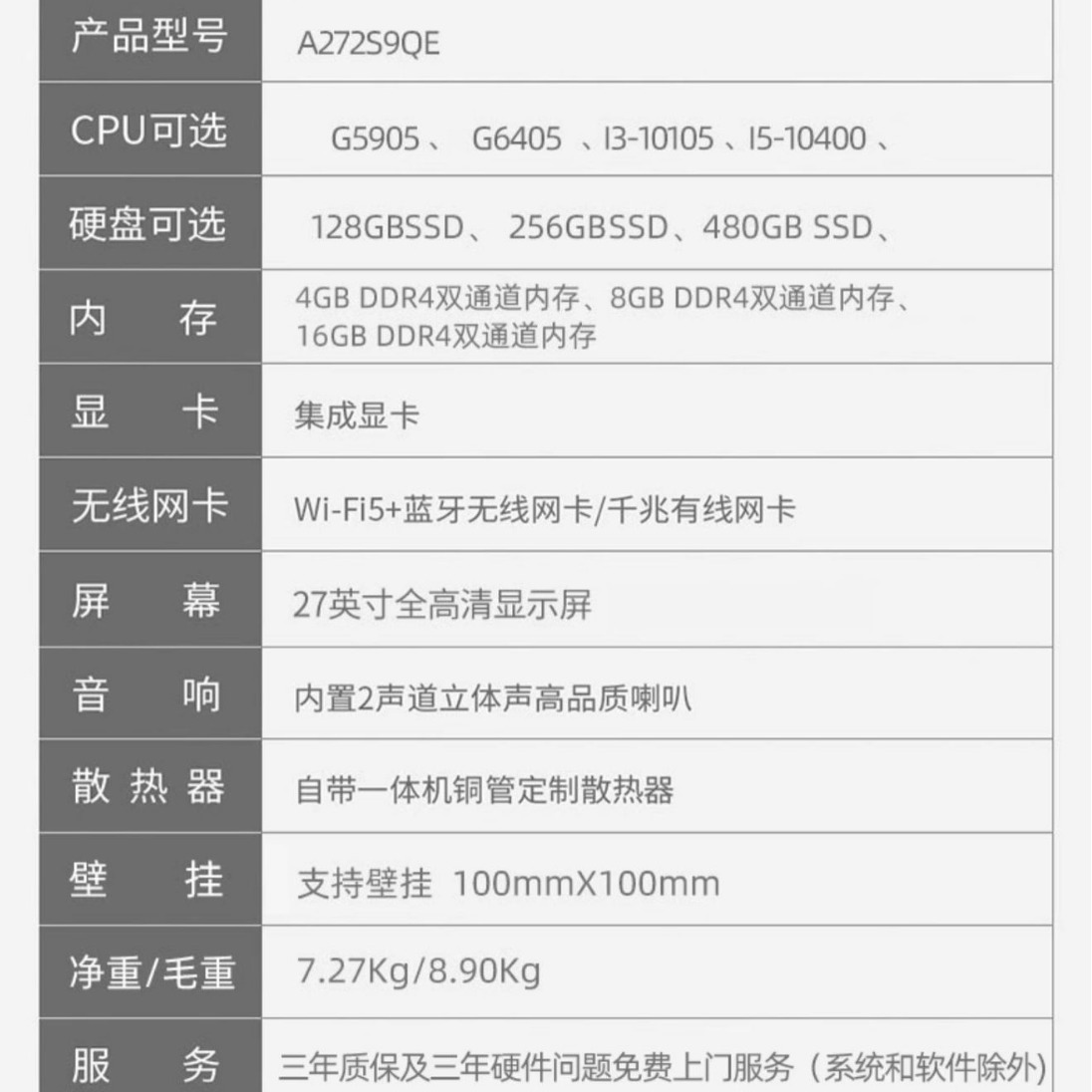 | nameOriginal | Philips A272S9QE 27 "IPS Office All-in-One 10 Generation/11 Generation CPU 16G Memory |