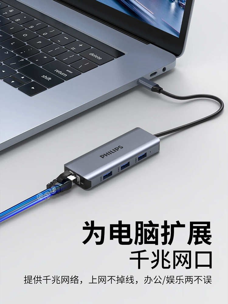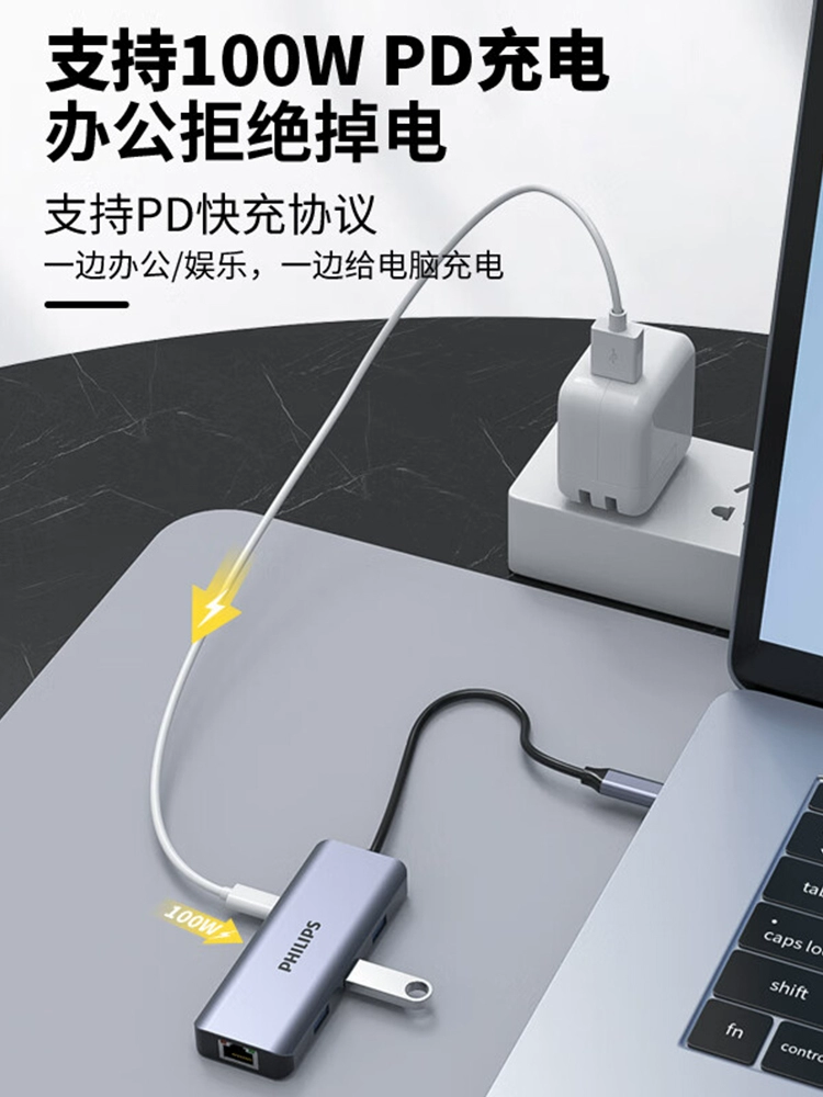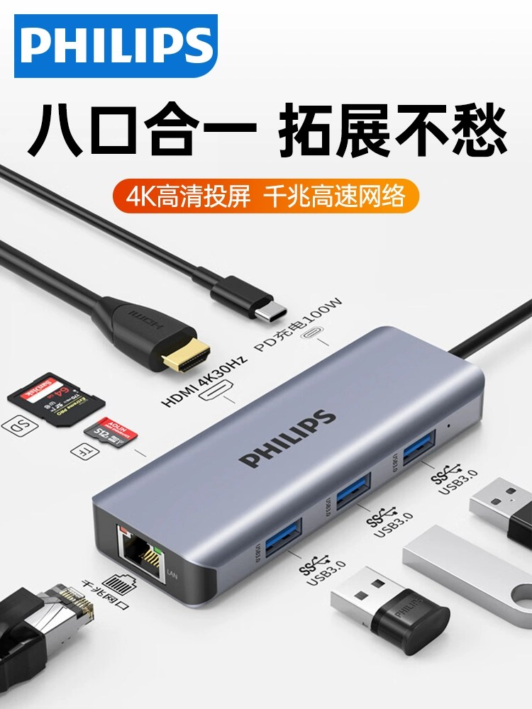 Philips expansion dock typec expansion USB splitter 4 Thunderbolt 3 multi-interface HDMI network cable adapter suitable for Apple computer converter macbook notebook Huawei mobile phone iPad