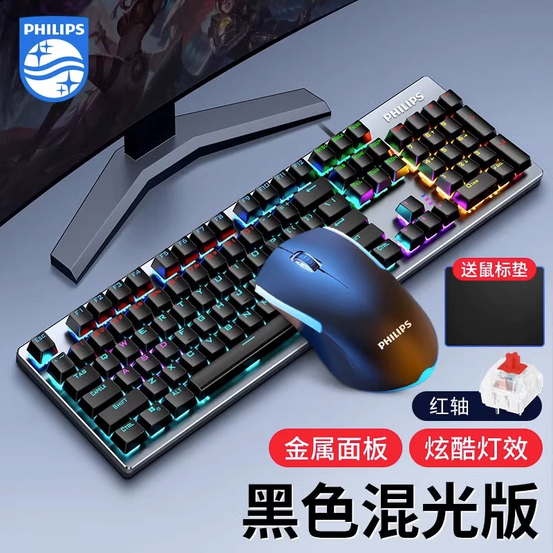 | nameOriginal | Philips mechanical keyboard and mouse set wired game e-sports dedicated desktop computer green axis black axis red axis tea |