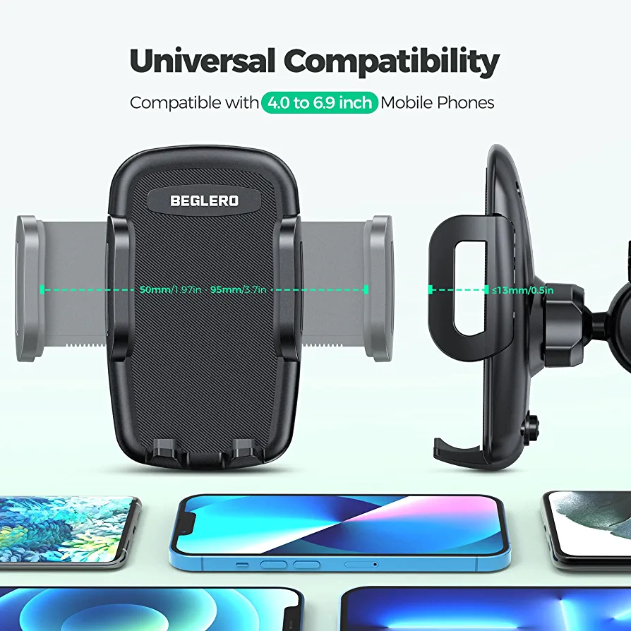 This product description is for a car phone mount that has been upgraded with a twist-lock air vent clip for enhanced stability. The clip is made of heat-resistant PC and glass fiber materials, making it strong enough to hold your phone securely without vibrating or falling, even on bumpy roads. The mount also features telescopic support feet that can be adjusted to accommodate small or large phones, without blocking the side buttons. The clamp arm of the air vent phone holder can be extended up to 3.7 inches to hold mobile phones under 6.9 inches, including popular models such as iPhone 13/13 mini/13 pro/13 pro max /12/12 mini/12 pro/12 pro max/SE/11/11 Pro/11 Pro Max/ XS/ XR/XS Max/X/ 8/8 Plus/7/7 Plus/SE, Samsung Galaxy S21/S21+ /S21 Ultra/S20/S20+/S20 Ultra/S10+/S10/S10e/S9+/S9/S8+/S8/S7 Edge/Note 20/Note 10/Note 9/ Note 8. The mount also features a flexible ball joint that allows for 360-degree rotation, making it easy to adjust the angle of the phone for the best viewing angle while driving. Additionally, the mount has a reserved charging port that provides enough space for data cable charging, ensuring that your phone stays charged while in use.