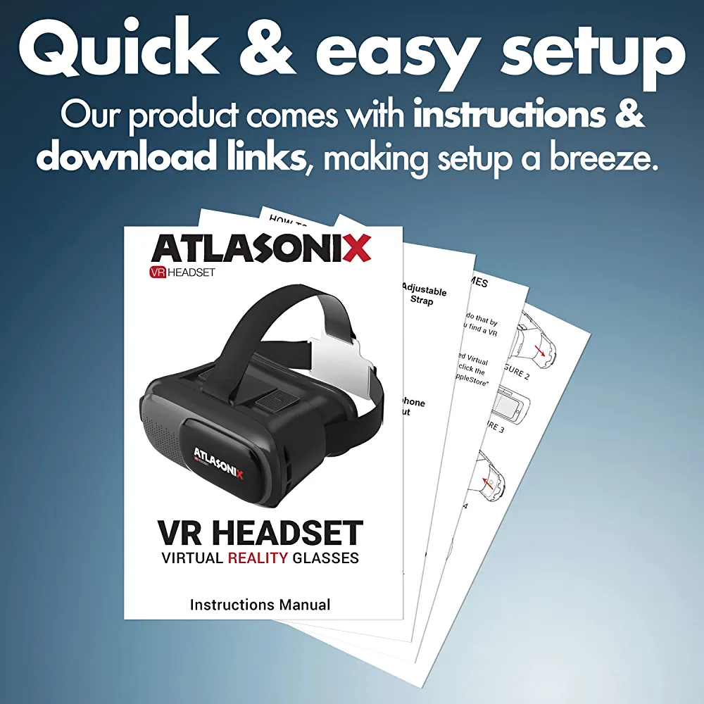 Get ready for an immersive visual experience with Atlasonix virtual VR glasses, designed to work with smartphones and mobile devices with 4”- 6.3” screens. With HD optimization and 3D gaming support, you can enjoy games, movies and more like never before! This latest model is compatible with a wide range of phones, including iPhone X, XR, 10, 11, 12, Samsung note, S20, note 8, Xiaomi, Galaxy and many others.