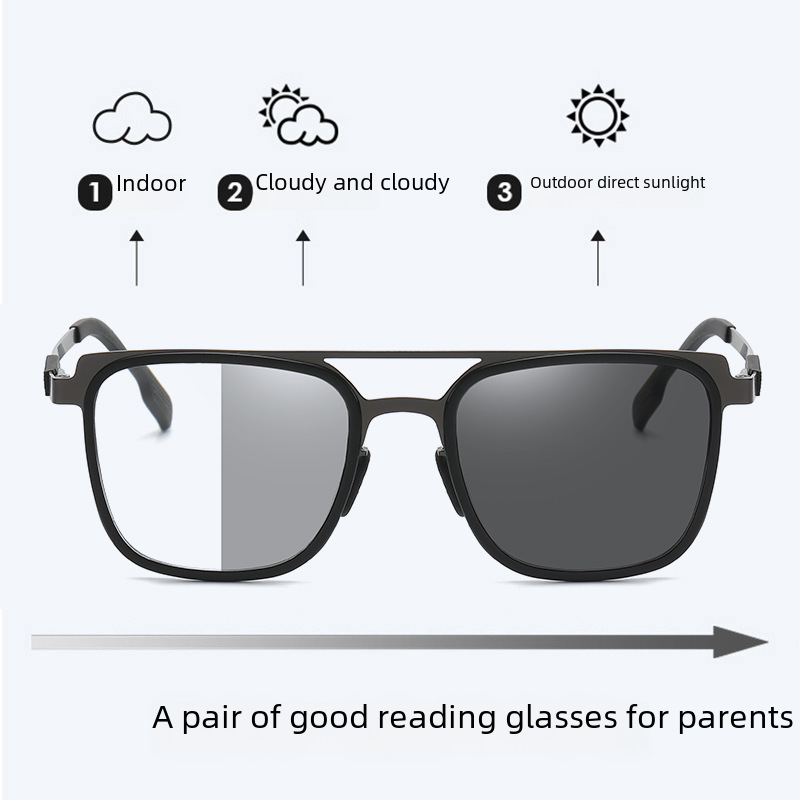 Photochromic Presbyopic Glasses Men's Automatic Zoom Progressive Multi-focus Dual-purpose Presbyopic Glasses Large Frame Presbyopic Glasses