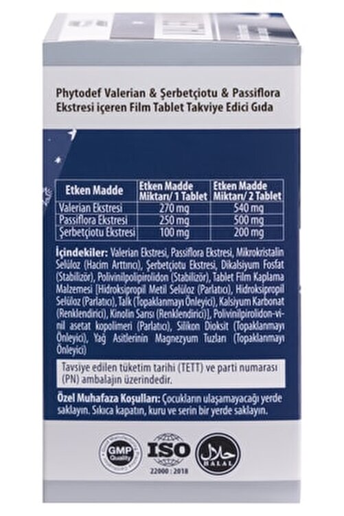 Supplementing food is recommended to use 1-2 tablets per day. Do not exceed the recommended daily serving. Supplementing foods are not a substitute for normal nutrition. Usage Group: Suitable for use 11 years and older. It’s not medicine. It is not used for the purpose of preventing or treating diseases. Consult your doctor during pregnancy and lactation, as well as in cases of illness or use of medications. Country of Origin: Turkey (The country of origin of the main ingredient of the food is different from the country of origin of the food.) There are 270 mg Valerian Extract, 250 mg Passiflora Extract and 100 mg of Hops Extract active ingredients. Contents: Valerian Extract, Passiflora Extract, Microcrystalline Cellulose (Bulking Enhancer), Hops Extract, Dicalcium Phosphate (Stabilizer) Polyvinylpolypyrrolidone (Stabilizer) Tablet Film Coating Material, Hydroxypropyl Methyl Cellulose (Brightener), Hydroxypropyl Cellulose Shine (Brightener), Talc (Anti-Clumping), Calcium Carbonate (Coloring), Quinoline Yellow (Colorant), Polyvinylpyrrolidone-vinyl acetate copolymer (Brightener), Silicon Dioxide (Anti-Clumping), Magnesium Salts of Fatty Acids (Anti-Clumping)