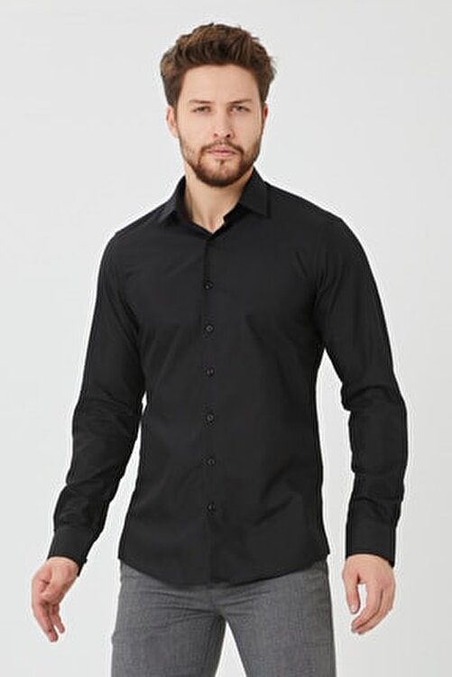 | nameOriginal | Pietra Paul Men's Black Slim Fit Flat Shirt  |