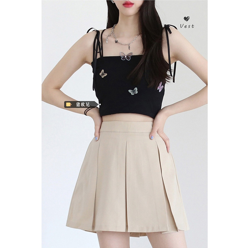 | nameOriginal | Pig Ernie Korean ins summer design niche age-reducing embroidered butterfly short lace-up vest suspender inner wear |