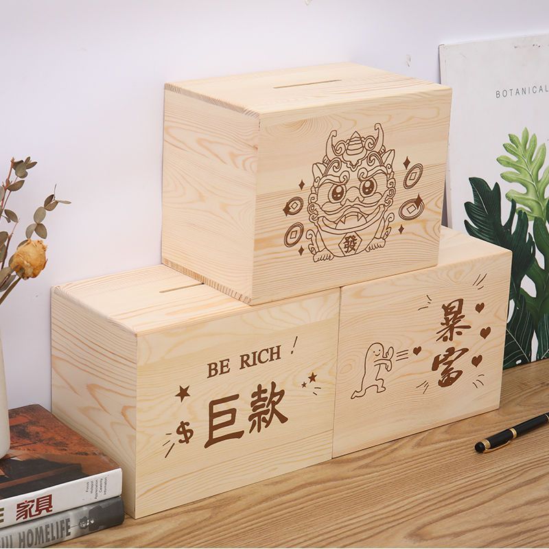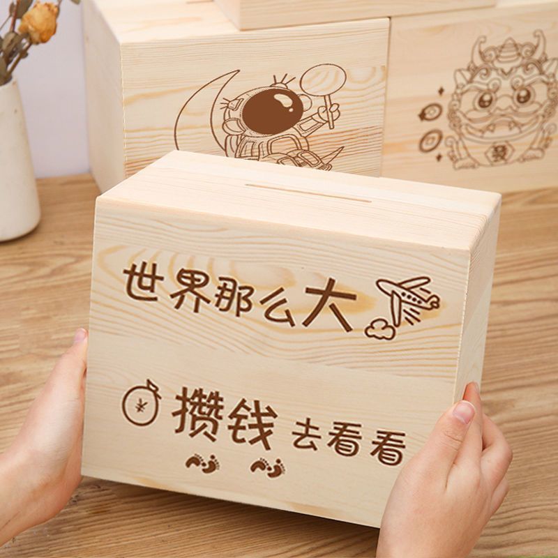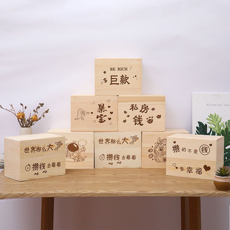 | nameOriginal | Piggy bank can only enter and leave solid wood simple piggy bank wooden simple color high color value big money box wholesale |